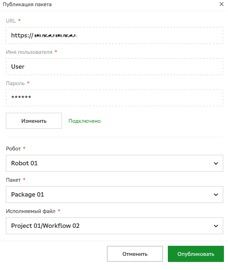 Бизнес-процесс или инициатива, автоматизированная с помощью программных алгоритмов — пакетов. В состав робота может входить один пакет и более. При необходимости можно настроить робота дополнительно добавив очереди, учетные записи, переменные окружения и правила запусков |